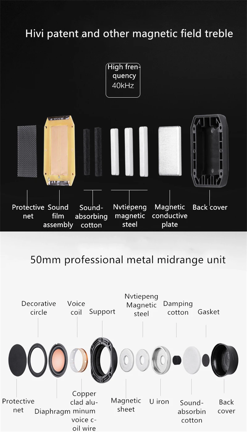 Frequency range: 38HZ-40KHZ (±3dB, free space).