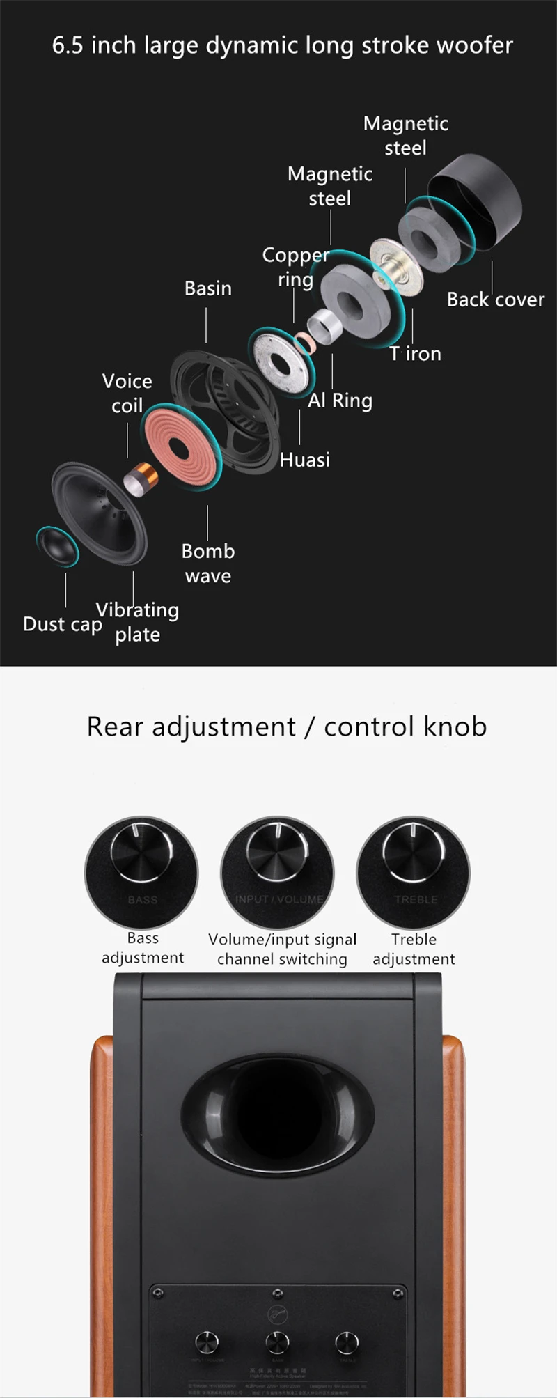Professional 6.5 inch woofer.