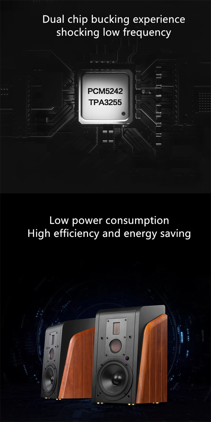 Woofer: 120Wx2 RMS, Total Power: 360W RMs