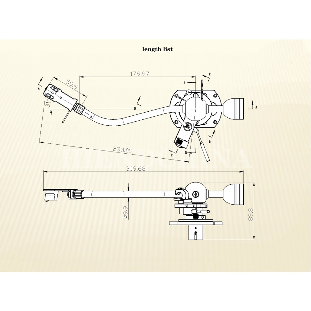 3 EZ-6009E: 9" fulcrum S dynamic bending arm Arm tube used copper, surface is polished chrome,
